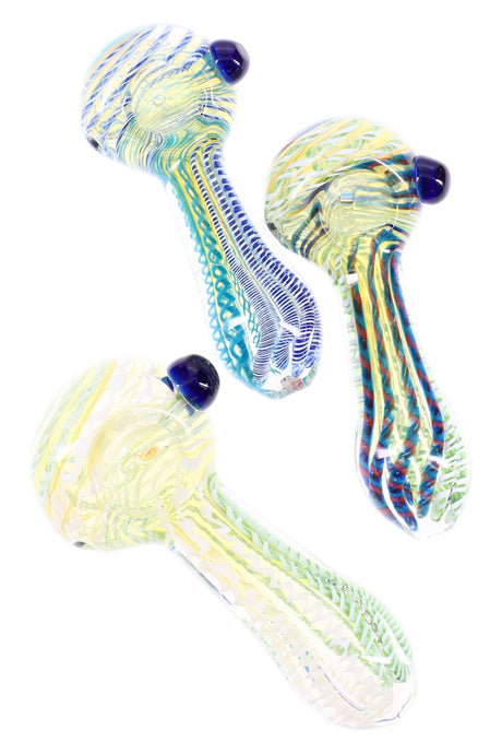 Color Changing Squiggle Frit Glass Pipe “Ripple” – 4½″ – Assorted Colors