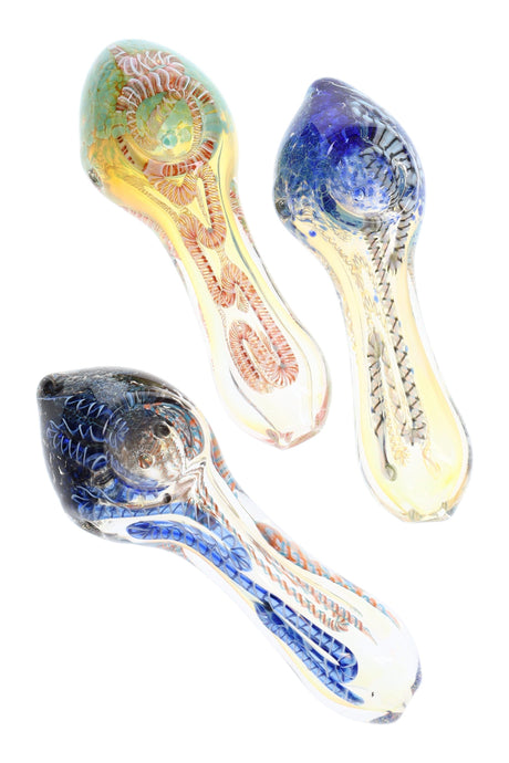 Color Changing Squiggle Frit Glass Pipe “Ripple” – 4½″ – Assorted Colors