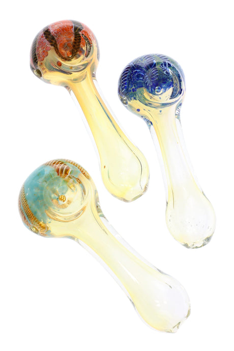 Gold Fumed Dotted Twisted Glass Hand Pipe “Swirl Surprise” – 4″ – Assorted Colors