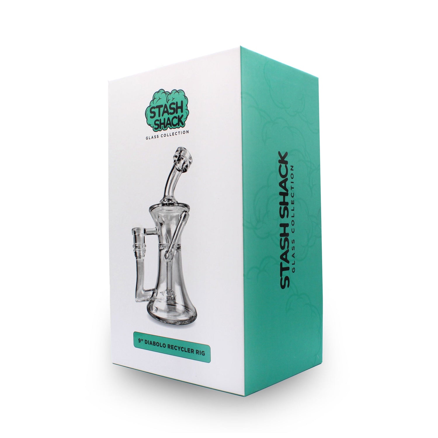 Introducing the 9” Diabolo Recycler Rig from The Stash Shack - the ultimate solution for smooth and flavorful vapor experiences. Crafted with precision from thick, sturdy glass, this rig boasts a comfortable mouthpiece and a bell-shaped design for ergonomic enjoyment.