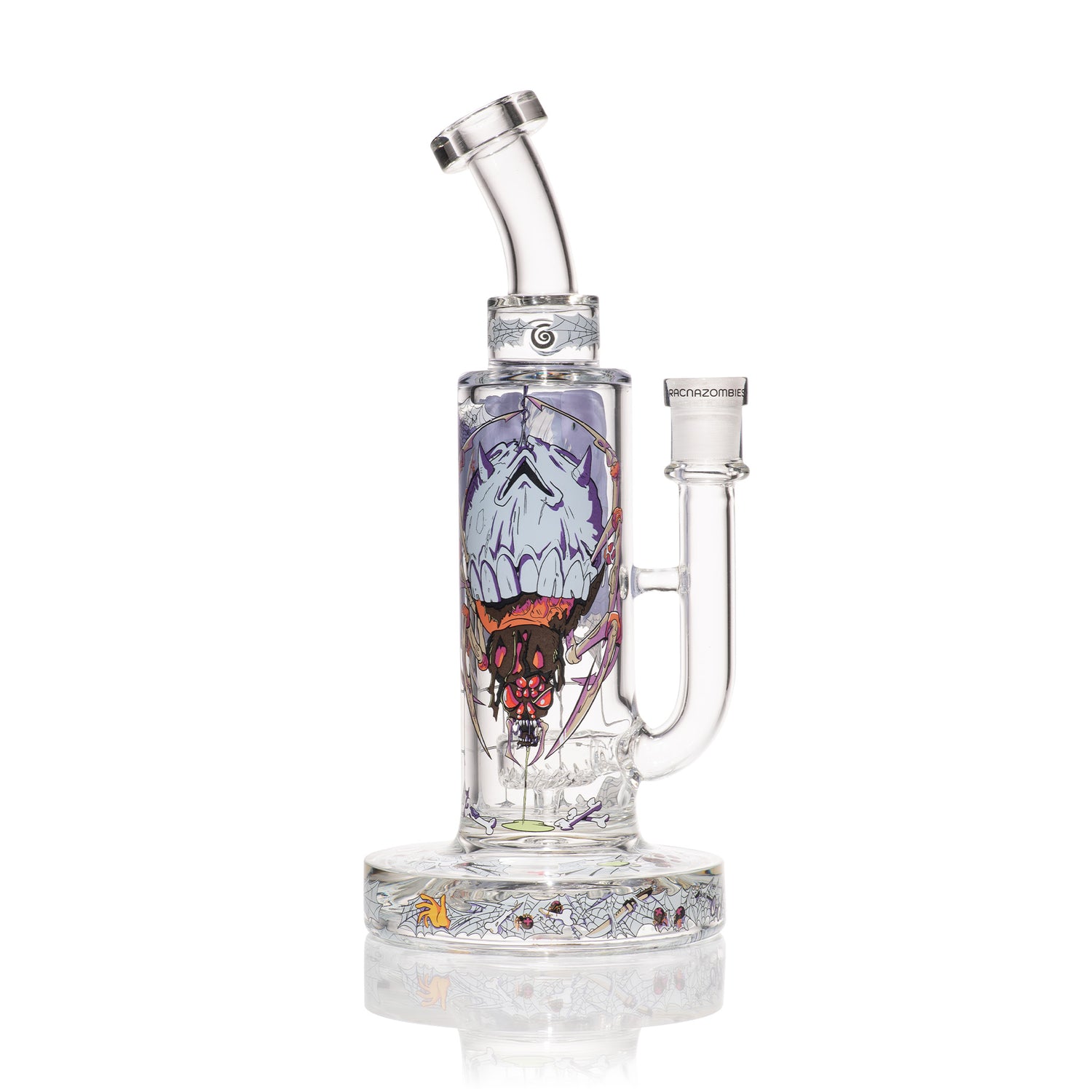 Standing 9.5 inches tall, this dab rig is designed to feel substantial in hand while delivering smooth, controlled hits. Its balanced proportions make it comfortable to use on a tabletop, while the sturdy glass construction helps it stand up to regular use. The design leans into the Arachna-Zombies lore, giving it a sinister presence that feels alive with movement and menace.