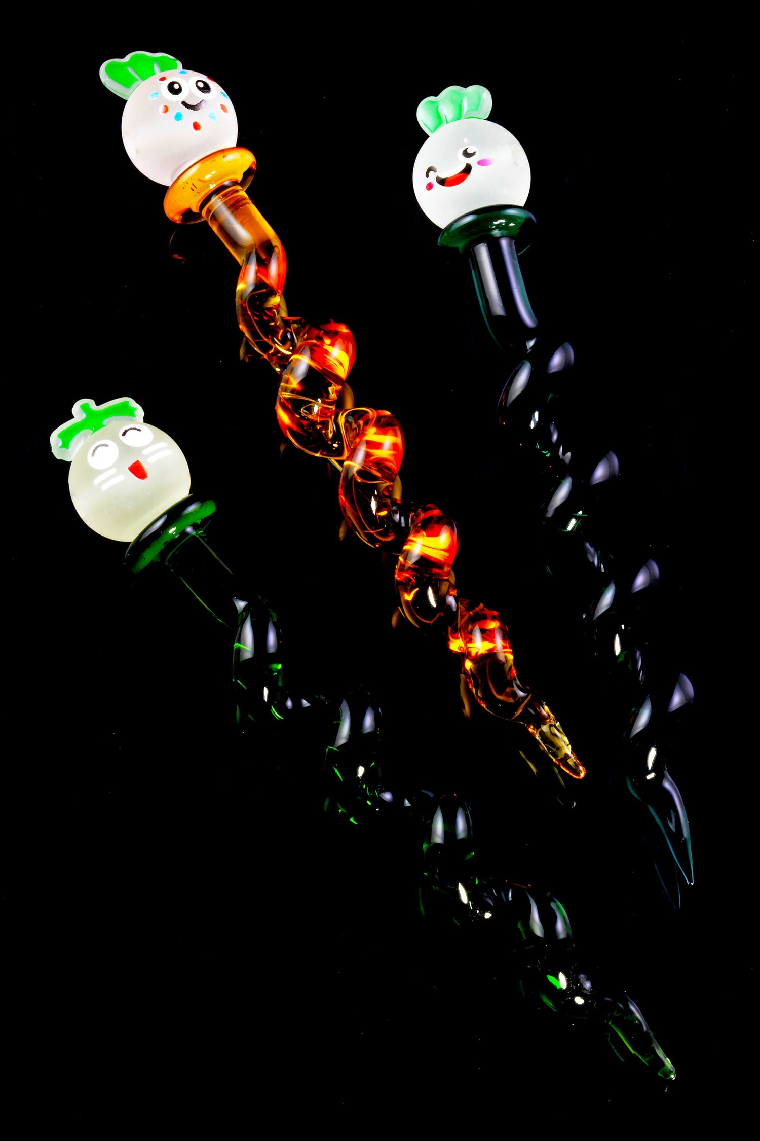 Level up your dab game with a tool that’s as cheerful as it is practical. This 6″ twisted glass dab tool features a happy little veggie-style face on top and a spiral stem that keeps sticky concentrates exactly where you want them.