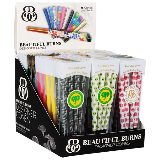 Beautiful Burns Designer Pre-Rolled Cones | Assorted Designs | 8pc | 30pk Display | 20pk Display