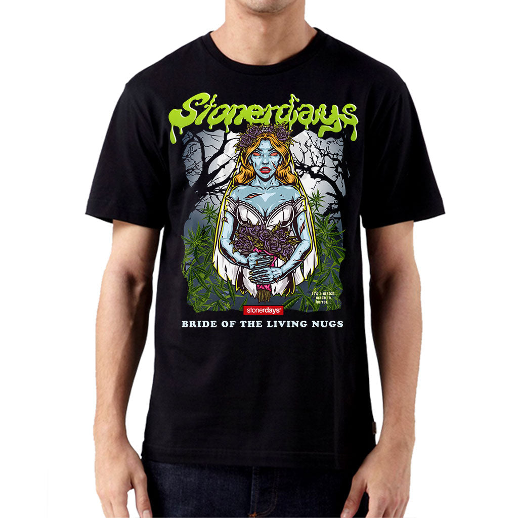 Introducing the StonerDays Bride Of The Living Nugs T-Shirt - the perfect addition to your spooky season wardrobe.