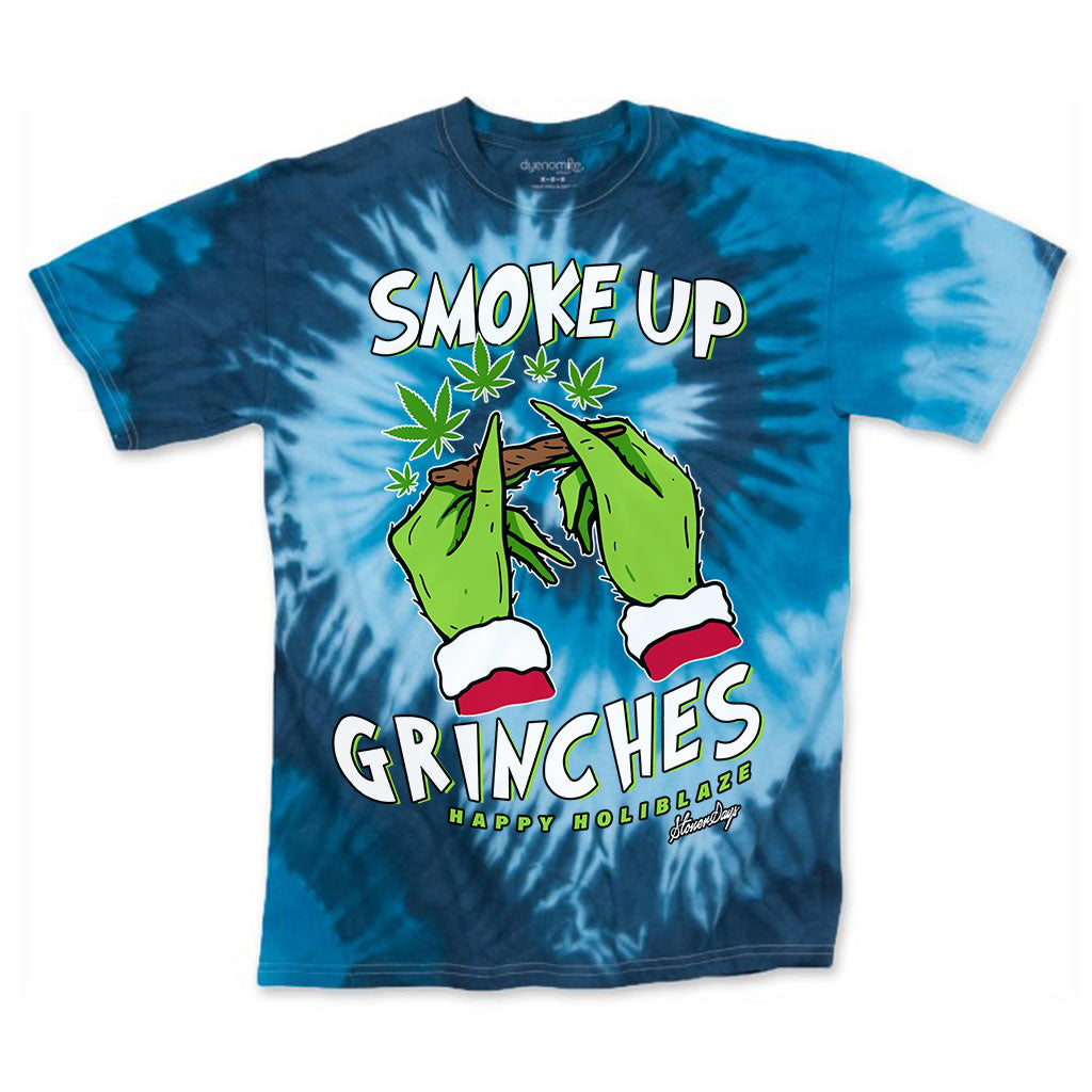 So, what are you waiting for? Add the StonerDays Smoke Up Grinches! Blue Tie Dye t-shirt to your collection today and show off your love for Christmas and smoking in style!