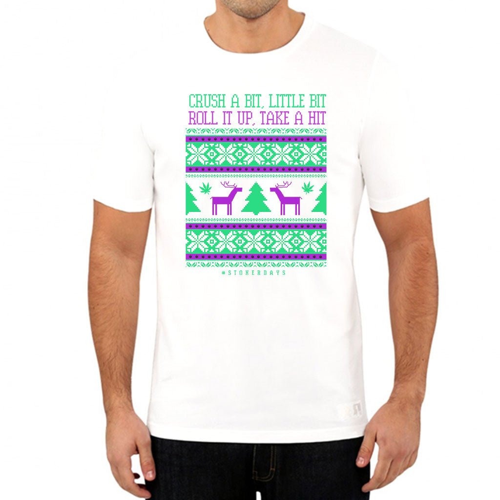 Looking for a comfortable and stylish t-shirt to express your stoner lifestyle? Check out the StonerDays Crush A Bit White Tee, available exclusively on DankGeek! This tee is made with 20 singles soft “Spectra Spun” 100% cotton, making it super comfortable and perfect for all-day wear. The 5.5 oz. 187 GSM fabric is preshrunk, ensuring that you get the perfect fit every time you wear it. The Crush A Bit White Tee features double-needle bottom hem and sleeves, and shoulder-to-shoulder tape for added durability. The white color and sleek design make it a versatile piece that can be paired with any outfit. This t-shirt is perfect for the holiday season, whether you're celebrating Holiblaze, the Holidaze, or just getting ready for an Ugly Christmas party. The "Crush A Bit" slogan is a fun way to show off your love for getting high, and the "Stay Weird" and "Think Happy" messages will remind you to stay true to yourself and enjoy life. Whether you're looking for stoner apparel for yourself or a gift for a fellow smoker, the StonerDays Crush A Bit White Tee is a must-have. Order now and get ready to stay high and stylish in your white tee!