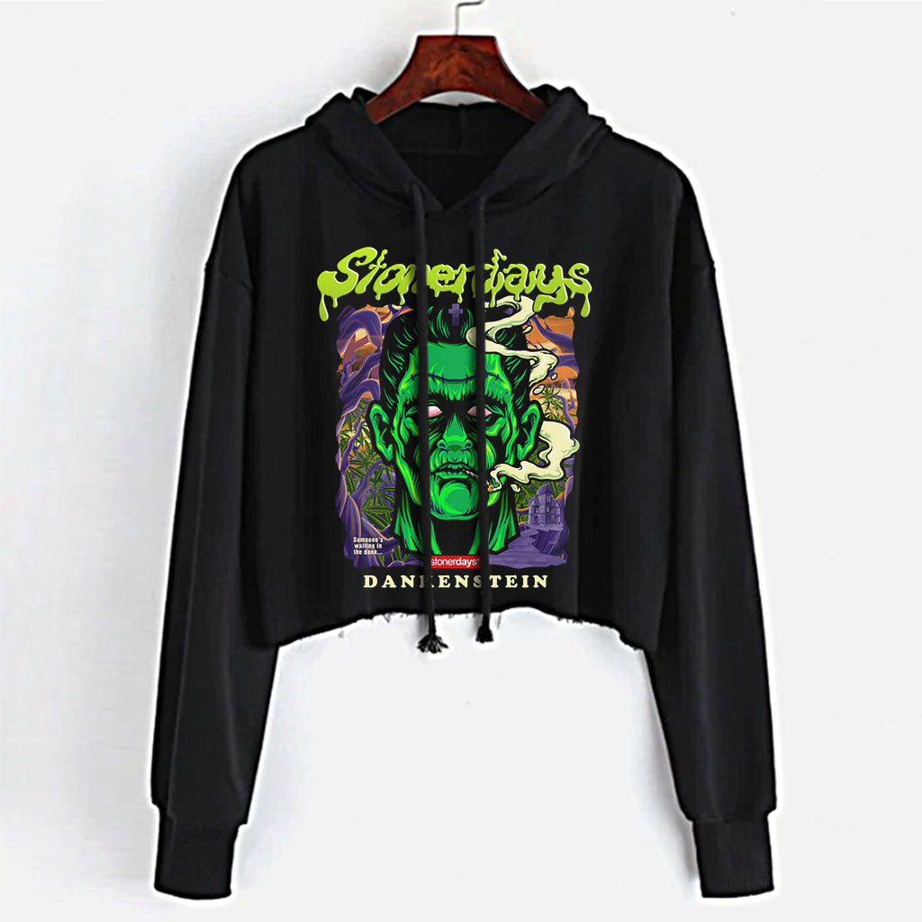 Get spooky and stoned with our Dankenstein Crop Top Hoodie!