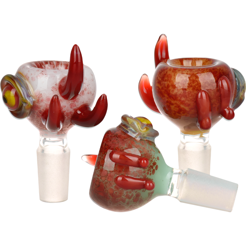 👁️🗨️ Elevate your smoking game with our Eyeball Glass Herb Slide 5-Pack Bundle! These 14mm male joint slides are not just functional but also a feast for the eyes—literally. Each piece features a vibrant, bloody eye design with curved horn handles, making your sessions both spooky and stylish. Crafted from durable borosilicate glass, these slides come in assorted colors to keep things fresh and exciting. Perfect for those who like their accessories as unique as their lifestyle. 🚀