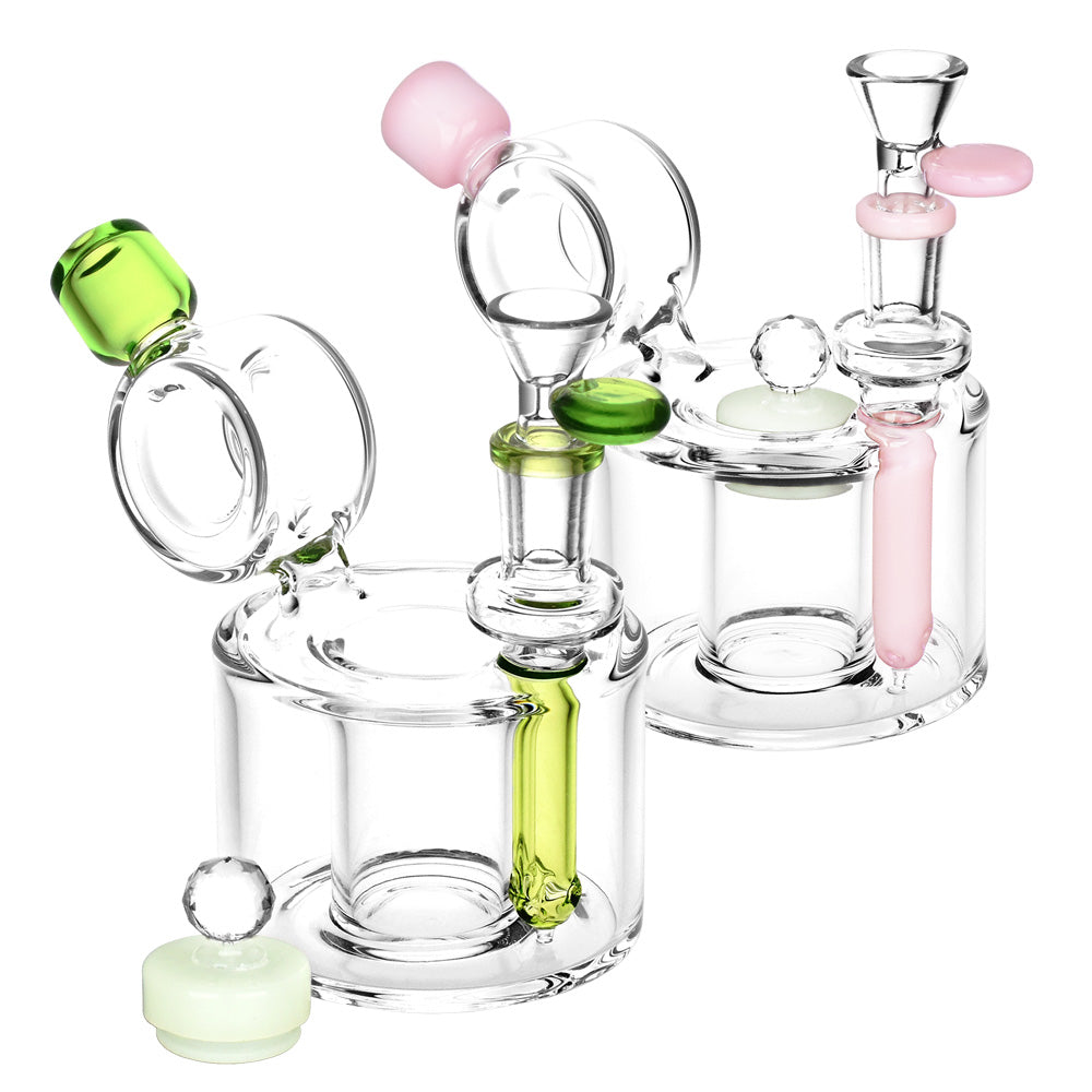 But that's not all! The center of the base donut boasts a built-in herb storage compartment, complete with a glow-in-the-dark lid featuring a gem cut handle. Say goodbye to misplaced herbs and hello to convenience! β¨πΏ