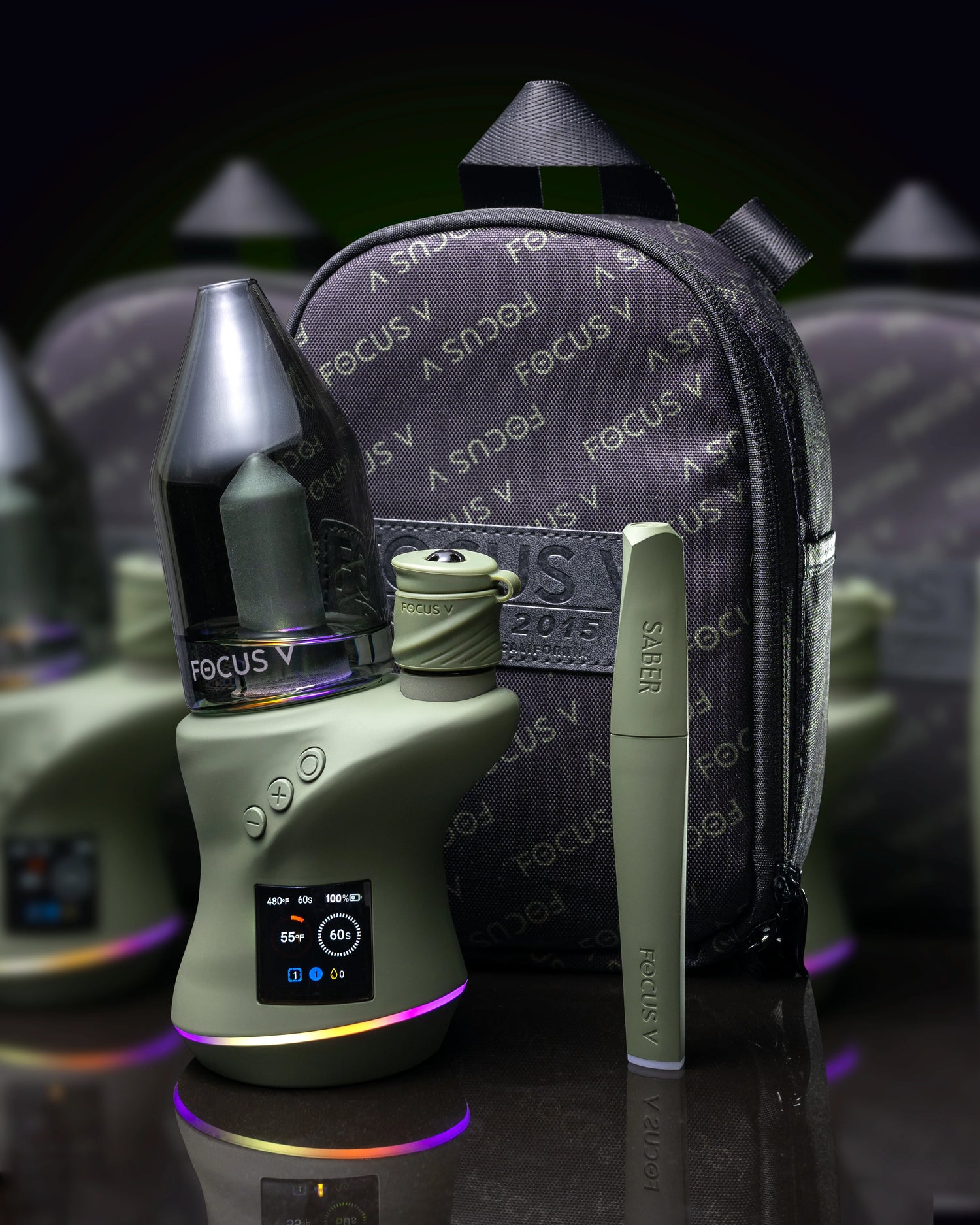 The Deluxe Kit also includes the Intelli-Core® MAX — Focus V’s largest oil chamber to date — and the SABER electronic dab tool, featuring a heated interchangeable tip and LED spotlight for clean, perfect scoops every time. It all packs neatly into the stylish shoulder bag for easy transport and protection. If you're serious about concentrates, this is the kit that keeps up.
