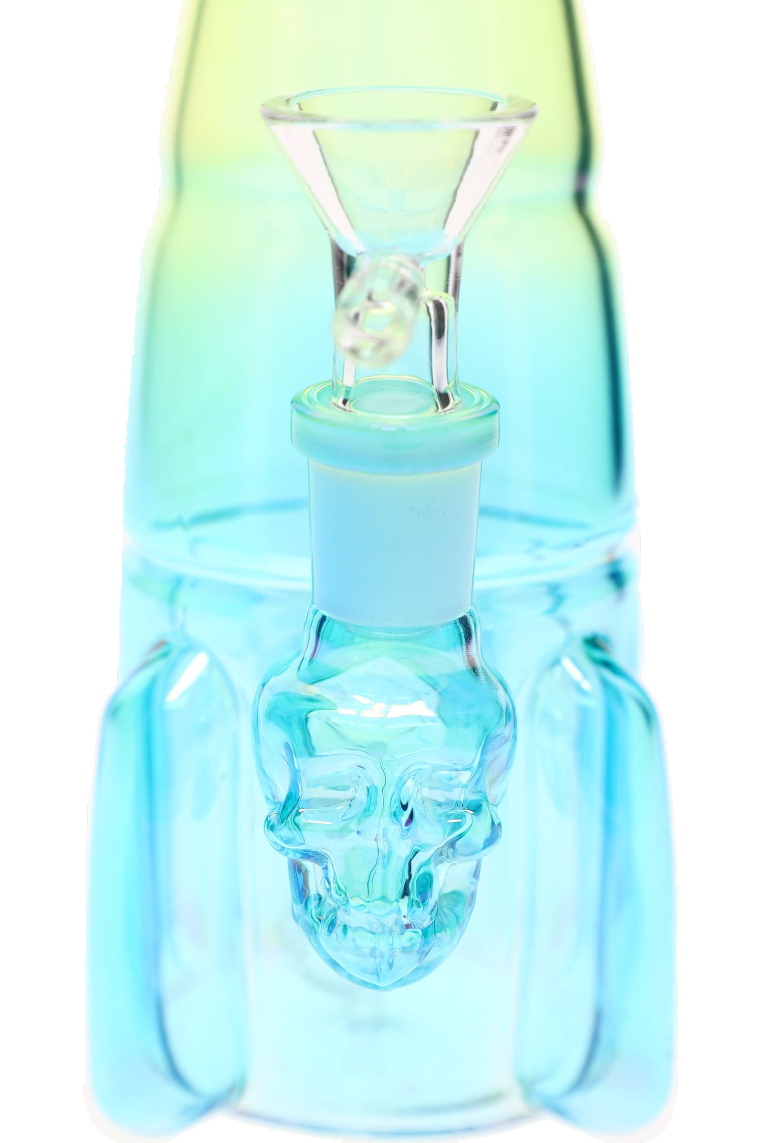 The compact footprint clears fast, while the internal bubble perc softens each pull. A tilted mouthpiece feels natural in hand, and the skull-accent joint adds extra flair that looks great on any shelf.