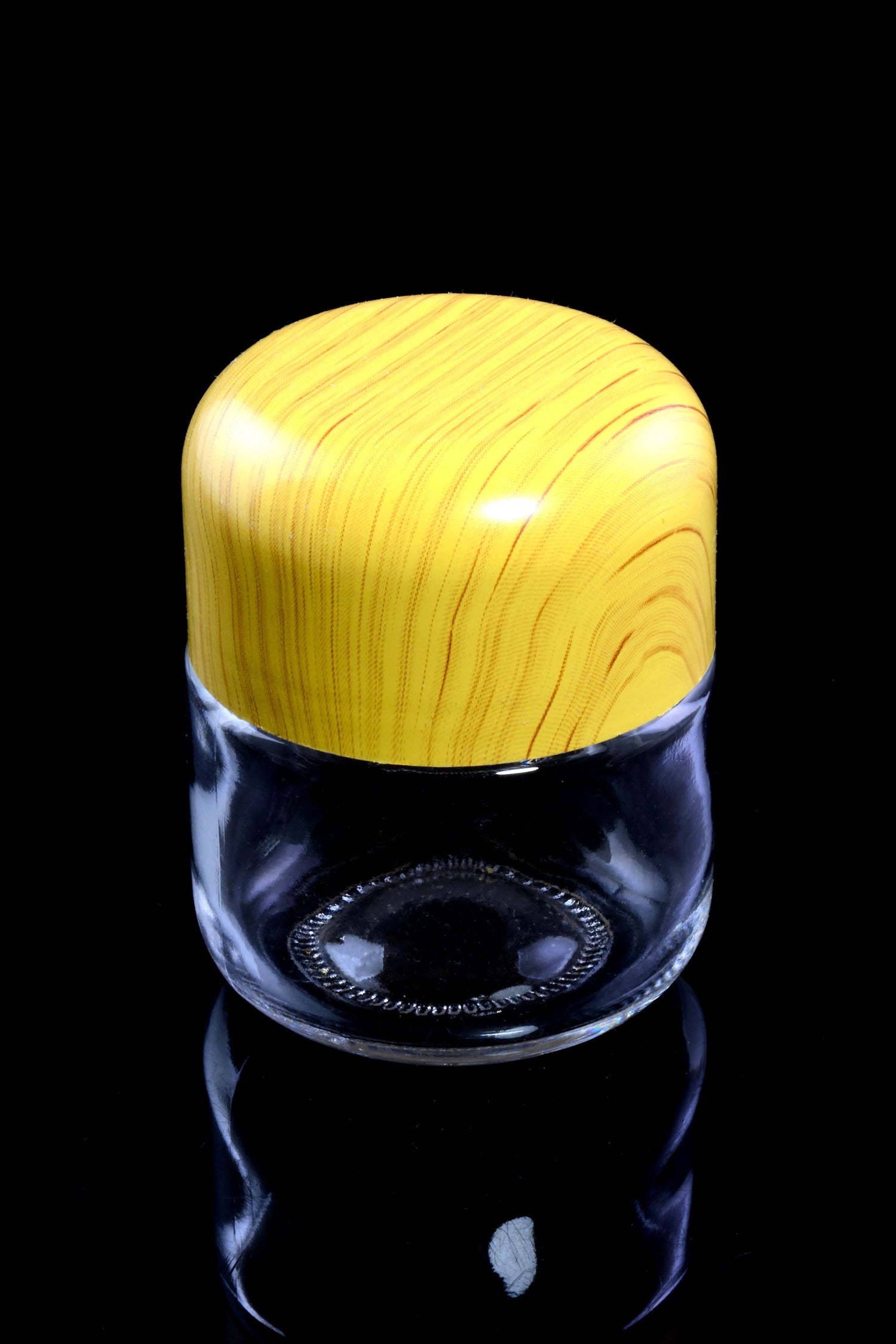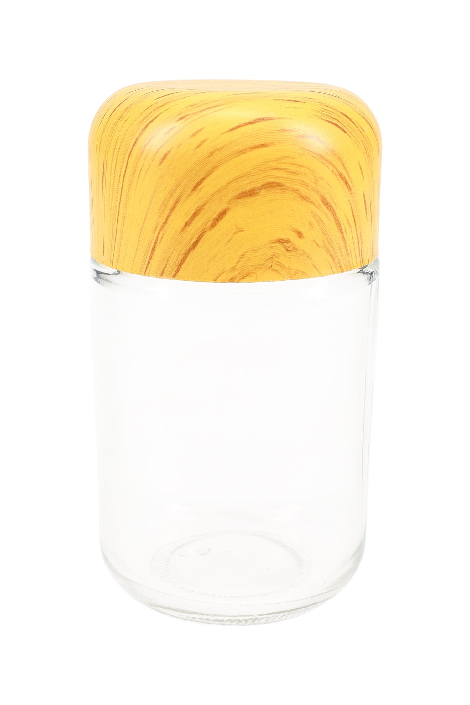 Fresh flower meets rustic style. This crystal-clear glass stash jar pairs a smooth, tamper-resistant lid with a warm wood-grain finish, keeping aromas locked in and prying fingers locked out.