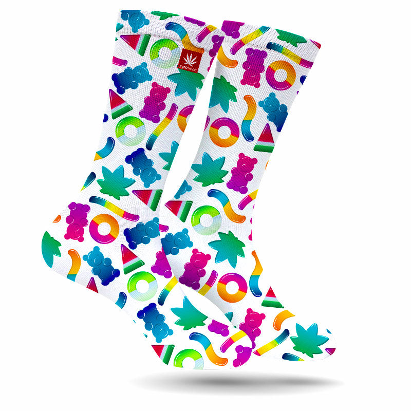 StonerDays Gummy Bears Weed Socks: Step up your sock game with the StonerDays Gummy Bears Weed Socks - the perfect accessory to complete your stoner look. These crew socks are designed and printed in California by stoners, ensuring that they are the perfect addition to any 420-friendly wardrobe.