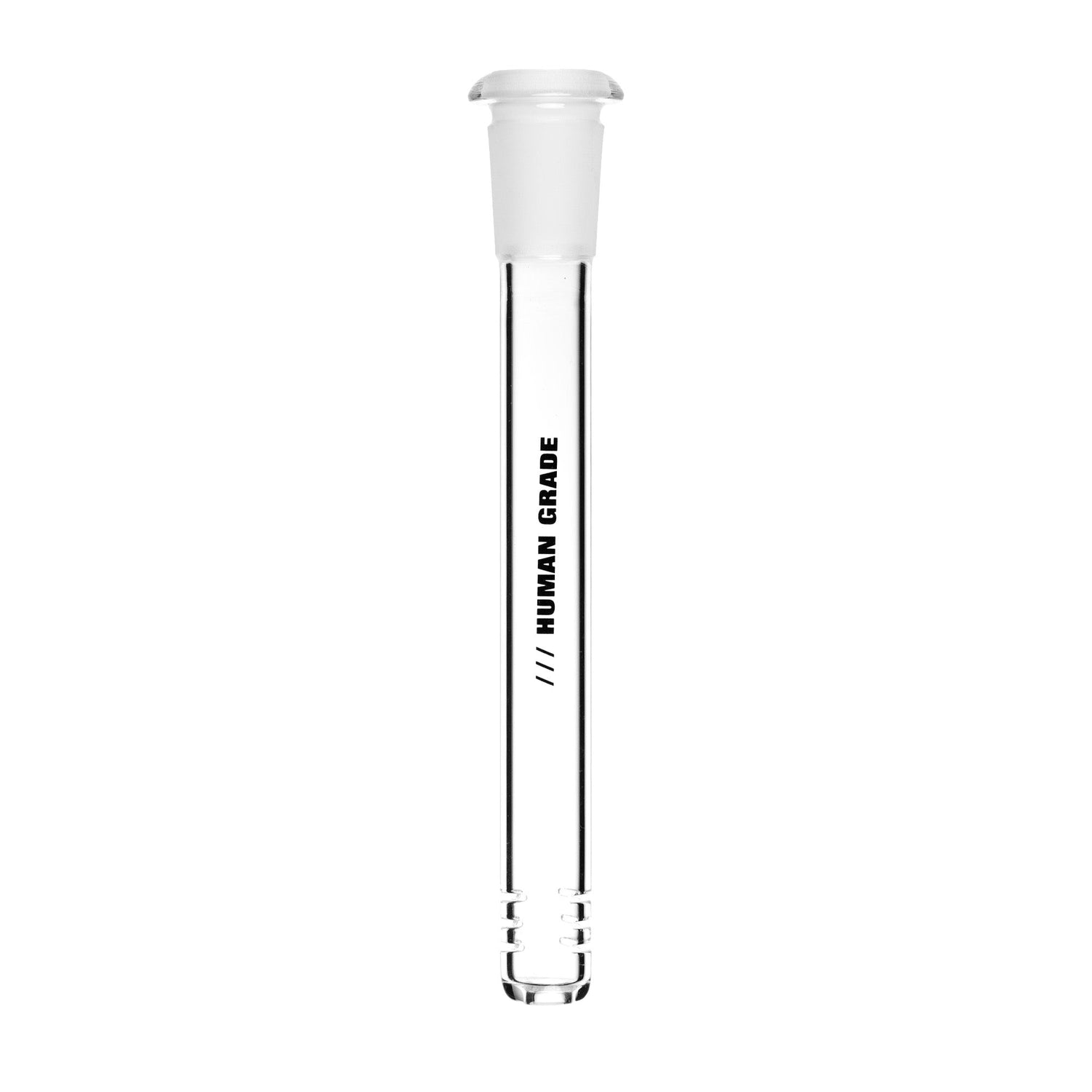 The Human Grade Downstem is the perfect replacement or upgrade for any 10mm or 14mm water pipe. Handmade from thick borosilicate glass, these clean, precise downstems come in every common length – 3", 3.5", 4", 4.5", 5", 5.5", and 6" – so you always get the exact fit you need. A printed ruler on every package makes measuring your current setup dead simple.
