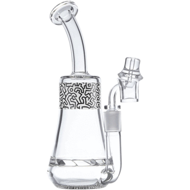 Inspired by the legendary pop-art icon Keith Haring, the K.Haring Rig blends vibrant artistry with cutting-edge filtration for an unmatched dabbing experience. Crafted from premium borosilicate glass, this 9.4-inch rig features a turbine percolator that creates a moisturizing cyclone of water for ultra-smooth, cool hits. Hand-applied, heat-resistant designs showcase Haringโs bold lines and vivid colors, complete with his iconic signature. With a 90-degree downstem, UFO-style directional carb cap, and built-in splashguard, this rig offers precise airflow control and clean sessions. Perfect for art lovers and concentrate enthusiasts, this officially licensed masterpiece is as functional as it is collectible.