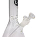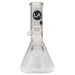 8-inch tall beaker bong with clear borosilicate glass. The most classic and functional bong. Heavy wall 34mm tubing, beaker base, ground glass-on-glass fittings, 6-slit diffusion, and glass bowl. Ice-pinch allows you to add ice to cool the smoke which better for you mouth and throat. The removable down-stem makes it easy to clean and easy to transport and the flared and gathered mouthpiece gives comfort and durability. Beakers provide the most stable base when filled with water. A heavy low center of gravity allows for greater stability. This beaker waterpipe is a classic by LA Pipes and a great choice for any smoker.