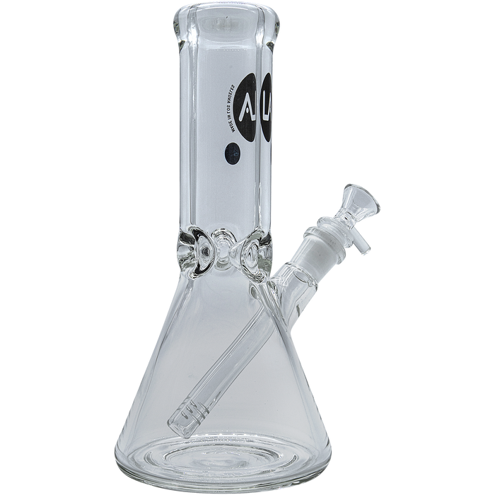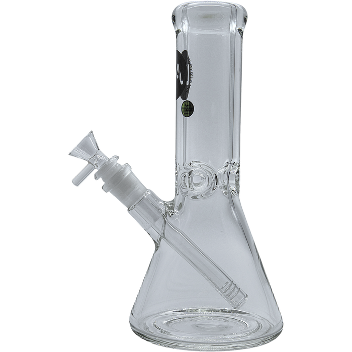 Measuring approximately 10 inches tall, this beaker bong features a 45Β° ground 18mm female joint and 50mm diameter tubing with a 9mm heavy-wall thickness. It comes with a 14mm male bowl (bowl style may vary) and a diffused 18mm/14mm down-stem.