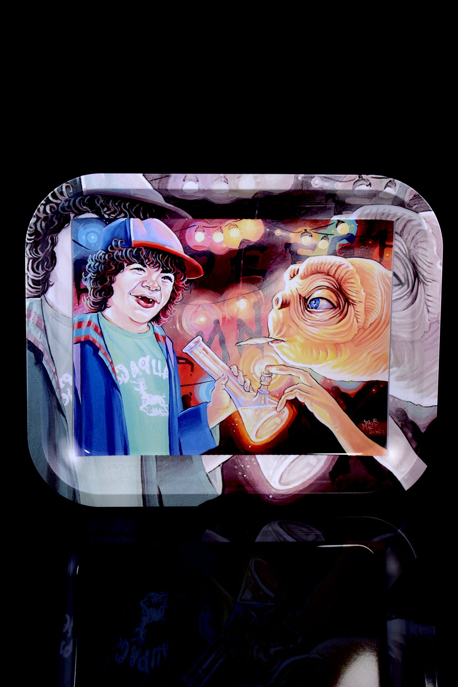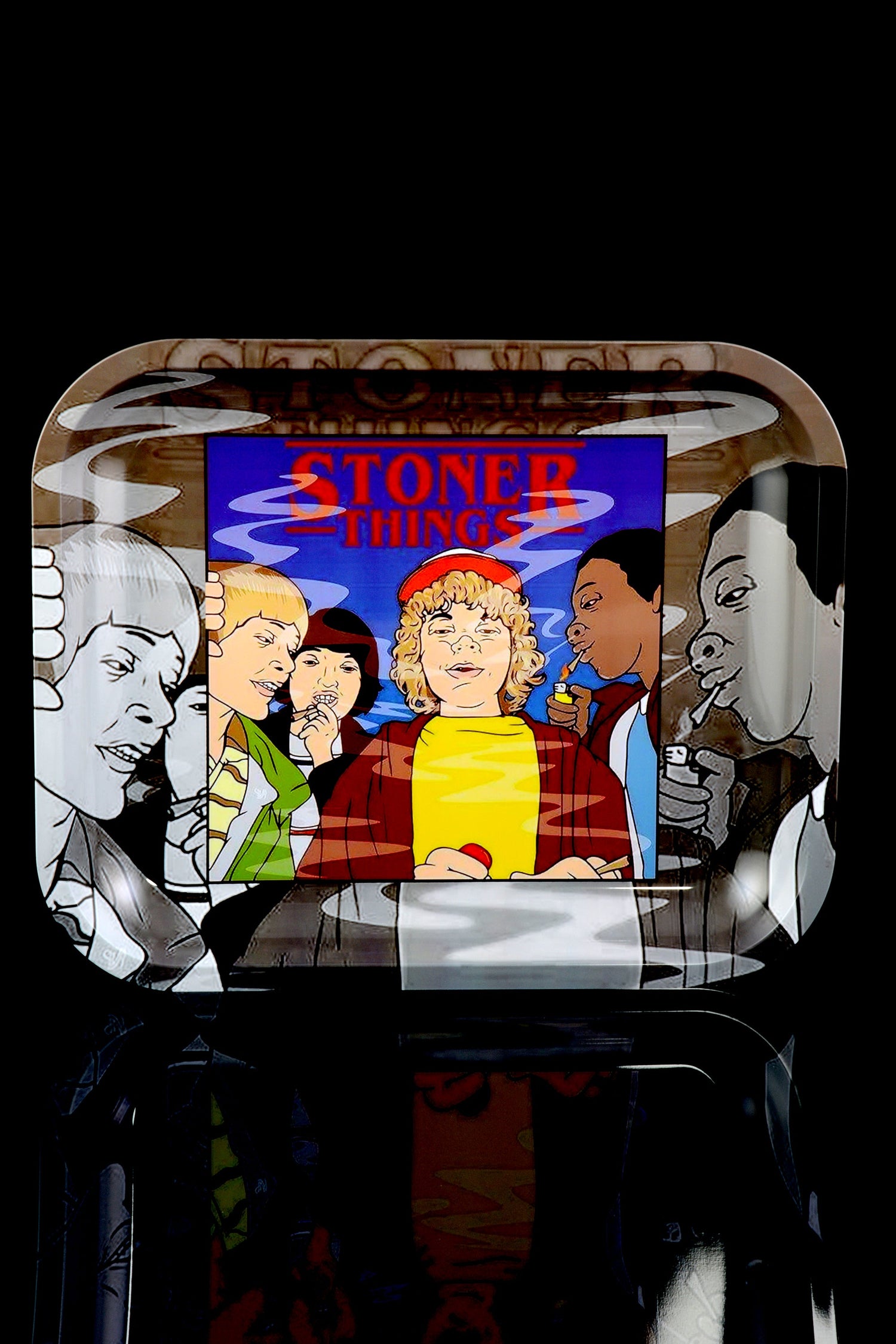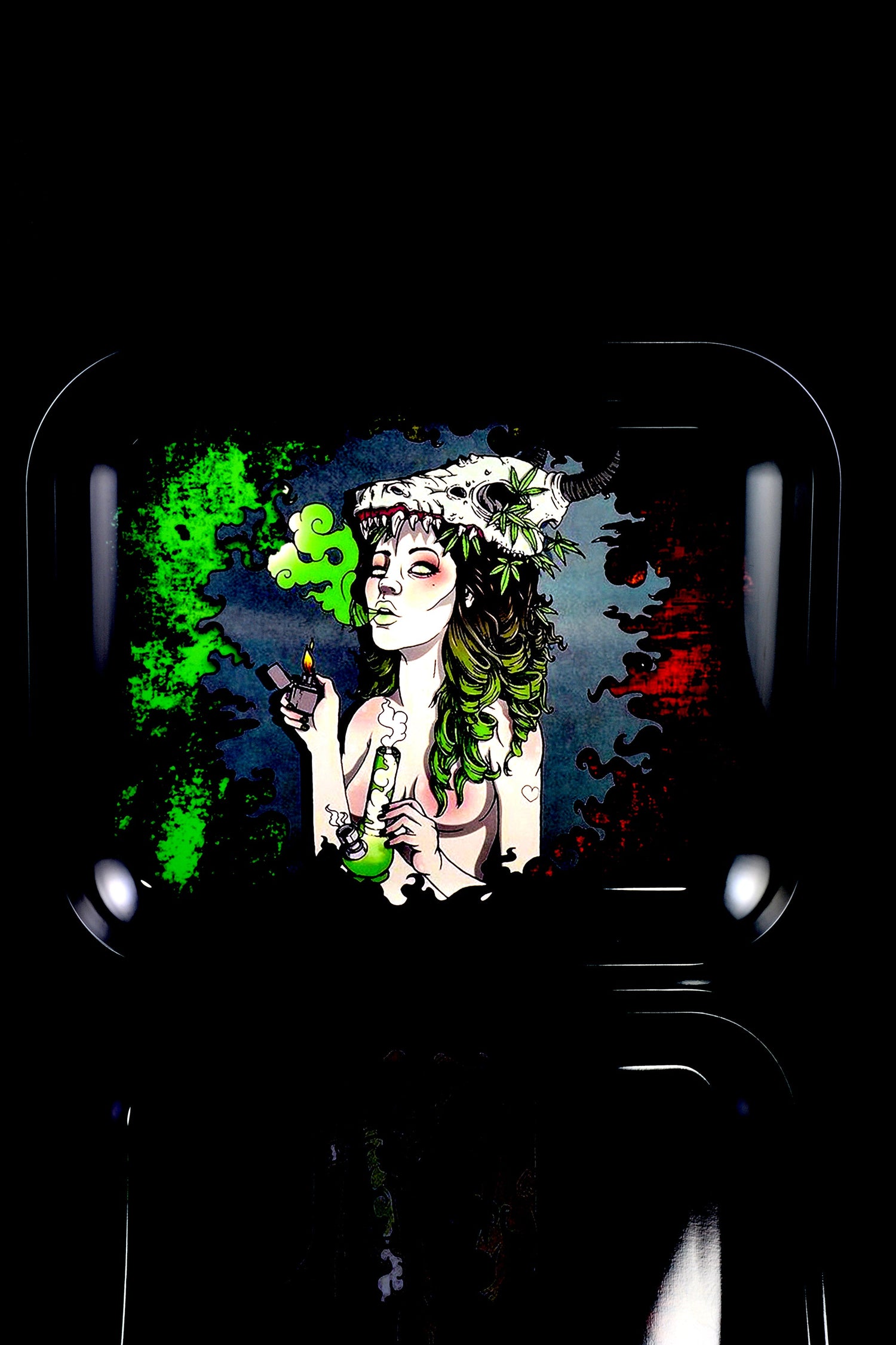 Give your setup a clean, reliable surface with this large metal rolling tray. It’s lightweight, sturdy, and shaped with smooth edges so your tools, papers, and herb stay where they belong. Pick the artwork that matches your vibe—from sugar-skull florals to bold comic-inspired graphics—and make your prep station pop.
