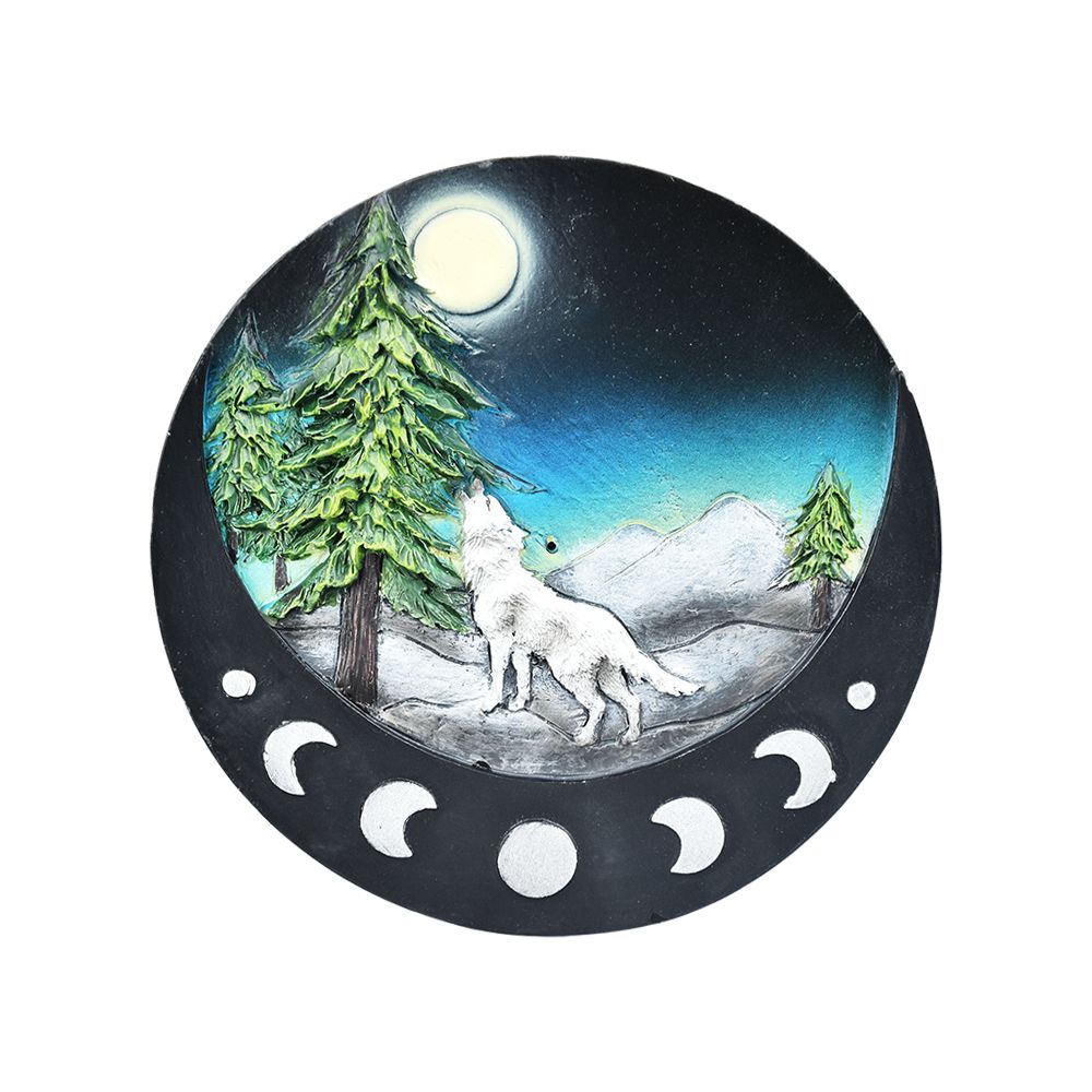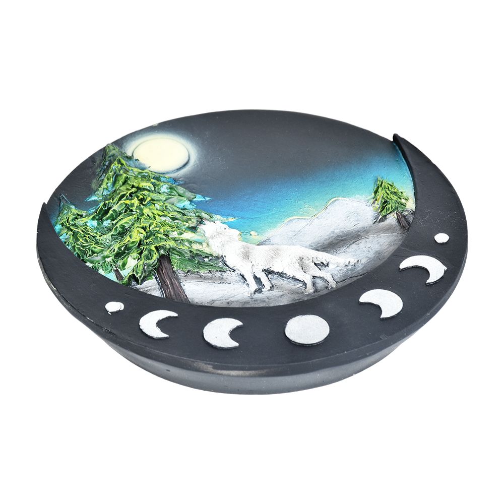 Embrace your inner spirit with the Lone Wolf Polyresin Round Incense Burner. With a howling wolf beneath a moonlit sky, this 4.75-inch incense burner sets a wild and mystical vibe in any room. Whether you’re drawn to the untamed energy of wolves or just love adding a little moon magic to your space, this piece is sure to spark your soul.
