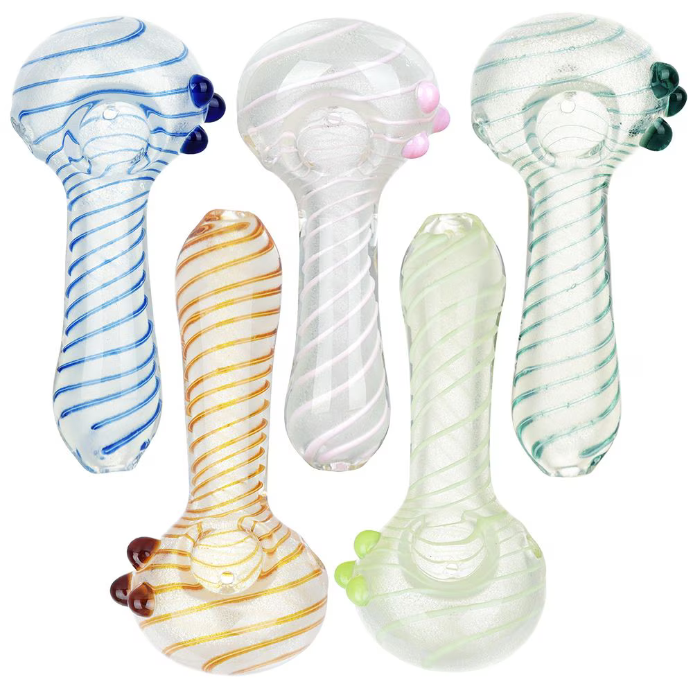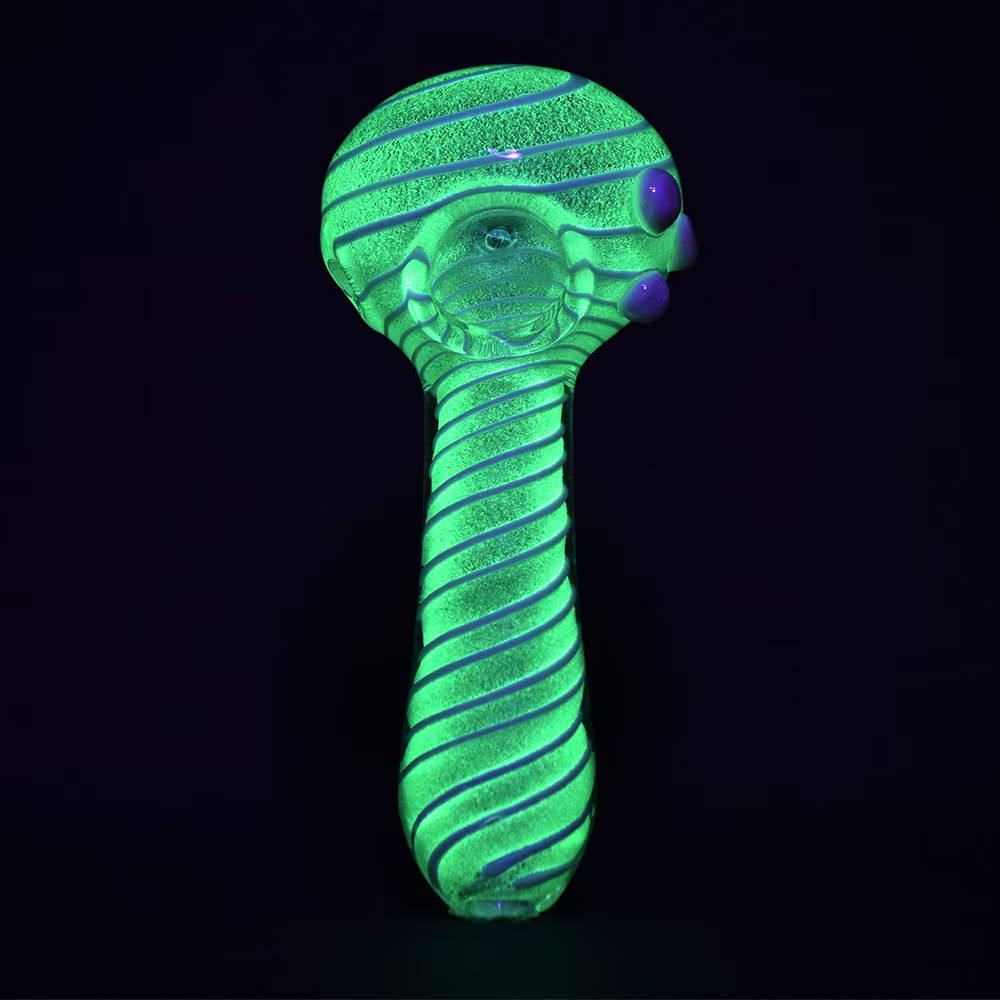 Light up your smoke sessions—literally—with the Lovely And Luminous Glow In The Dark Spoon Pipe! At 5 inches long, this spoon-style hand pipe is the perfect size for smooth, on-the-go hits. The thin spiral stripe design gives it a sleek, modern look, while the glow-in-the-dark feature adds an unexpected twist for those late-night sessions. Whether you’re chilling at home or hanging out with friends, this pipe’s decorative accent marbles make it a real standout piece.