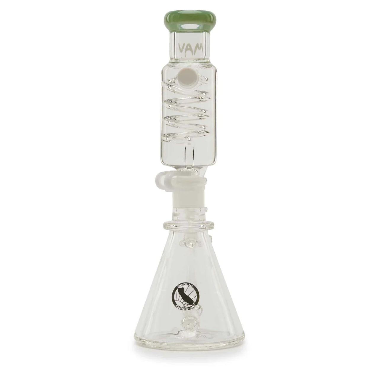 Introducing the MAV Glass Maverick Glass - Mini Inline Freezable Coil System! This 10 inch tall beaker base bong with a slitted inline percolator is sure to give you a powerful hit. The removable freezable glycerin coil head makes for easy cleaning, while the mav logo and joint holding clip add a touch of style. The 14mm joint (bowl included) is perfect for your favorite smoking accessories. Whether you're a pro or just starting out, the MAV Glass Maverick Glass - Mini Inline Freezable Coil System has you covered. So don't wait any longer, order your very own MAV Glass Maverick Glass - Mini Inline Freezable Coil System today!