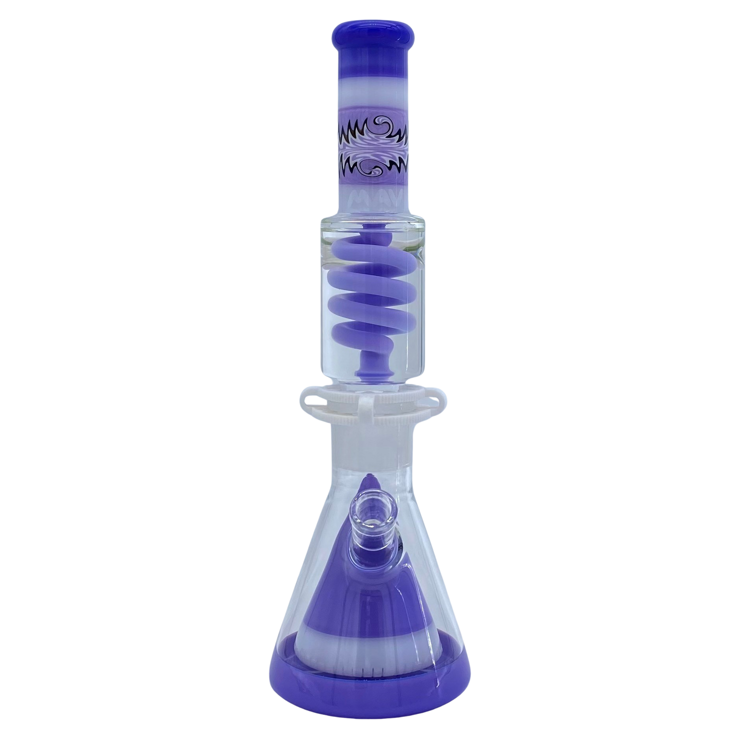 MAV Glass Reversal Wig Wag Purple And White Slitted Pyramid Beaker Freezable Coil System