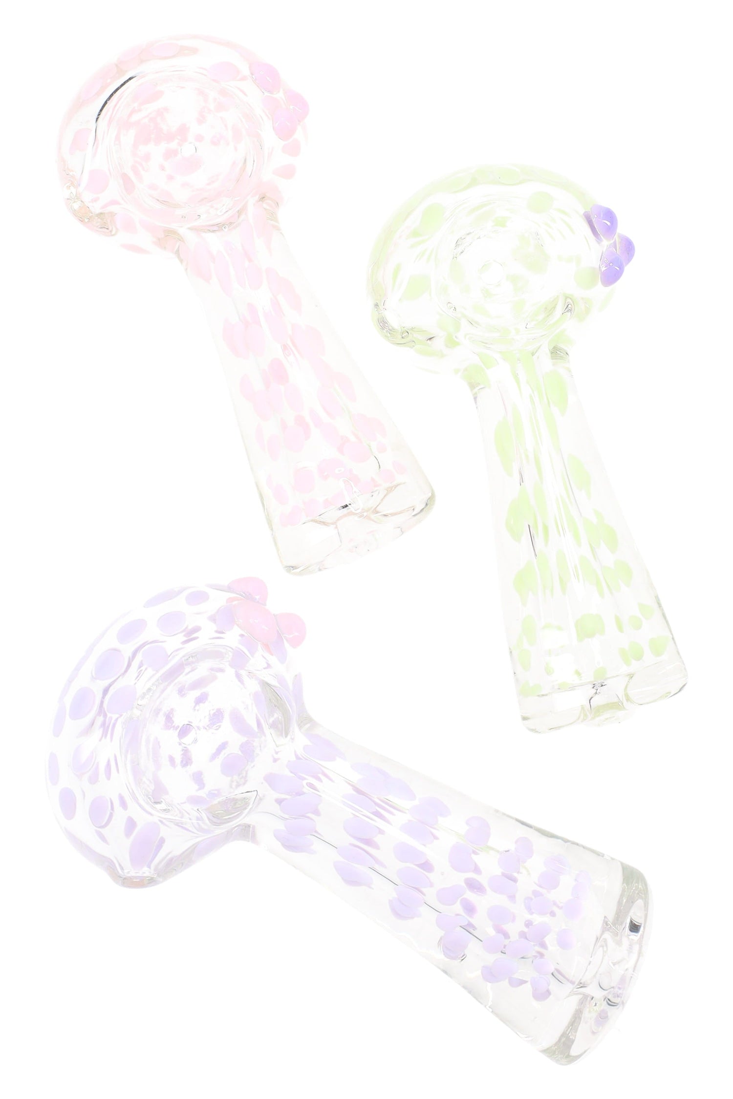 FAQ about Neon Dotted Clear Glass Spoon Pipe “Neon Dots” – 4″ – Assorted Colors