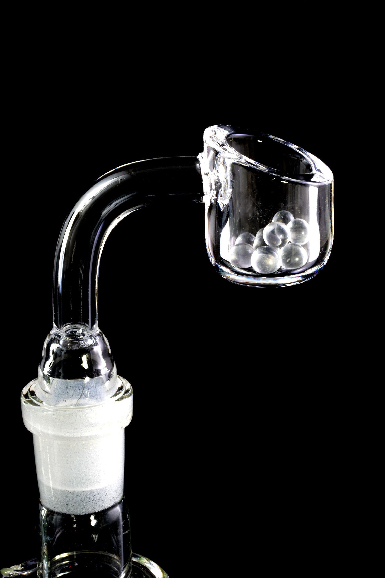 Quartz heats fast, cleans easily, and won’t add off-notes to your terps. Dropping a pair of 4 mm beads in the bucket helps keep oil in motion under the cap, making temps easier to manage and cleanup a breeze.