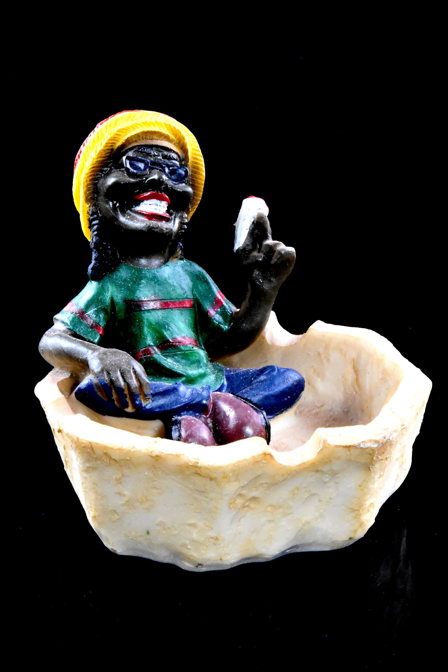 Bring island vibes to your coffee table with a hand-painted Rasta resin ashtray that doubles as a fun conversation piece. Each design features a laid-back Rastafarian figure kicking back with an oversized roll, so every tap-off feels like a mini vacation.