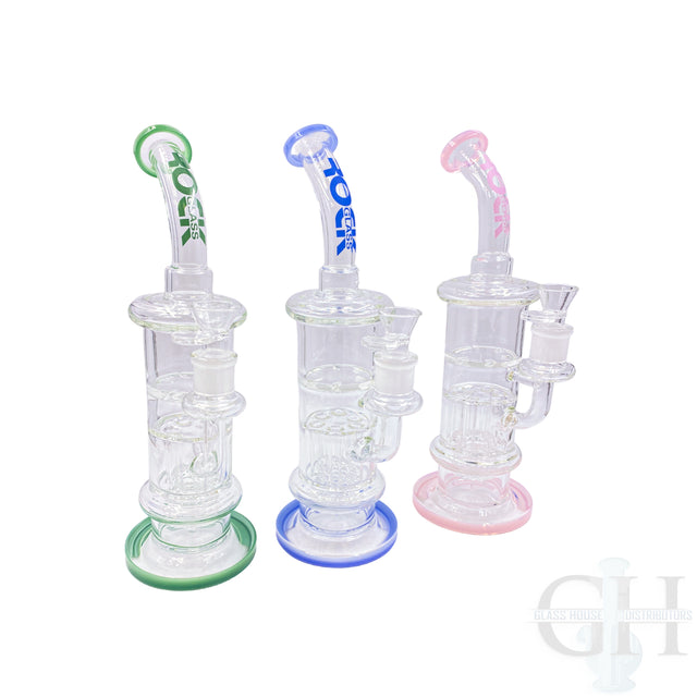 The bottom chamber houses a powerful matrix percolator that breaks smoke into tiny bubbles for cooler, smoother, and cleaner hits. The upper chamber adds extra space for airflow and helps keep water where it belongs. By the time smoke reaches the bent neck, it is cooled, filtered, and ready for an easy inhale. The sidecar joint makes loading the 14mm bowl simple and convenient.