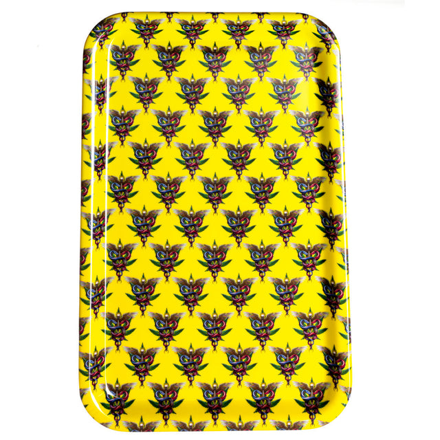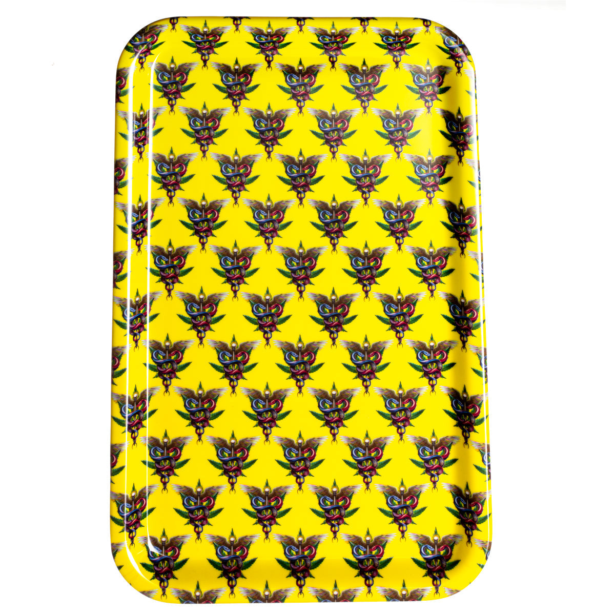 The Rollin Budz Caduceus rolling tray brings a clean, artistic look to your rolling setup without feeling overdone. The design stands out in a subtle way, making it a solid choice whether it lives on your coffee table or gets packed up for travel. It feels balanced in the hand and has enough space to keep everything organized while you roll.