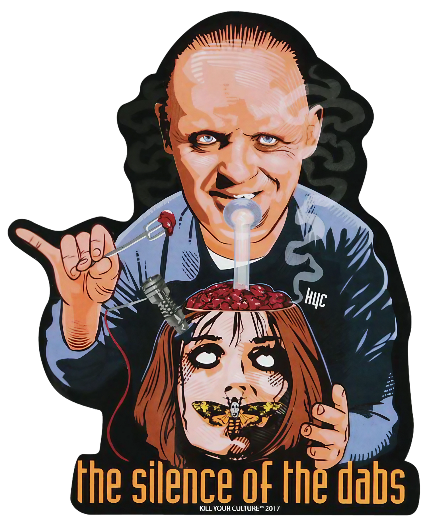 Are you a fan of the cult classic Silence of the Lambs? Then you need to grab this Silence of the Dabs Sticker! Show your love for the iconic movie with this 5" x 6.25" vinyl sticker featuring none other than Hannibal himself, dabbing some delectable brains. This sticker is sure to be a conversation starter with its shock factor and top-quality, peel & stick design. It's been pressed seven times with three clear coats of glossy UV-protective ink and four passes of color, so you can be sure it won't fade or wear away. Plus, it's perfect for any brainy dabber you know who deserves something gruesome! π§ π±