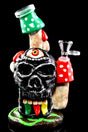 Dive into trippy vibes with a compact art piece that rips. This skull-and-mushroom themed glass bong hides a honeycomb percolator inside for smooth, flavorful pulls in a small, display-worthy footprint.
