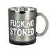 Introducing the Stoned Metallic Glass Coffee Mug! This mug is perfect for the coffee, tea, or other beverage connoisseur who wants to show off their unique style. The mug is made from thick, high-quality glass and has a metallic interior finish. On the exterior, you'll find a Fucking Stoned decal to show off your personality. With a 16 ounce capacity, this mug is perfect for those who need a little extra to get through the day.