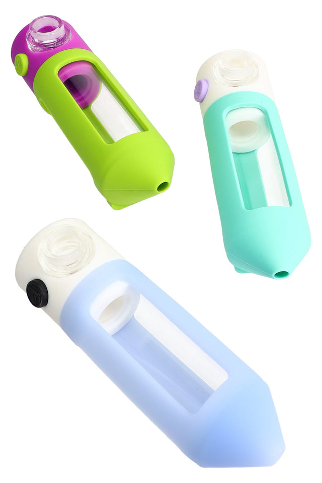 Meet the pocket-size powerhouse. This 5½″ Stonerware modular water pipe blends a tough silicone shell with a clear glass core for clean flavor and grab-and-go durability.