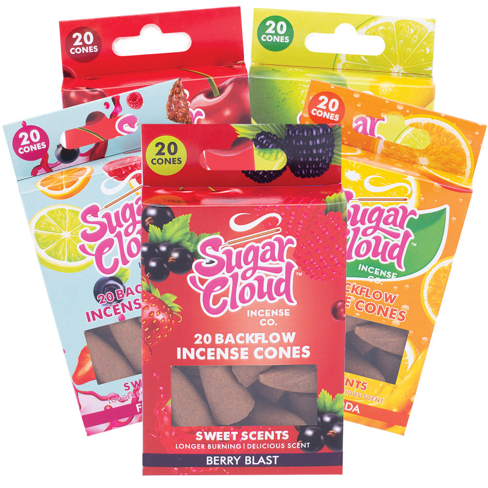 Introducing the Sugar Cloud Backflow Incense Cones—a sweet, visually stunning way to enhance any room with cascading, mouth-watering fragrances! These cones are designed to burn evenly from the top down, creating a mesmerizing flow of fragrance as it pours gently down for a unique, aromatic experience. Whether you're in the mood for fruit-forward notes or candied clouds, the Sweet Scents Collection has something for everyone.