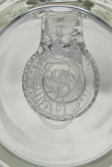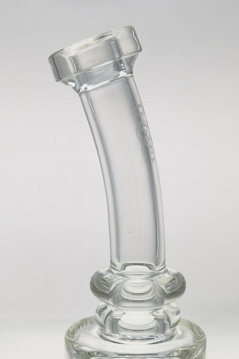 TAG - 12.5" Bent Neck Super Slit Puck Diffuser 65x5MM - 18MM Female - Wavy Sandblasted Logo - Clear .03 is backordered and will ship as soon as it is back in stock.
