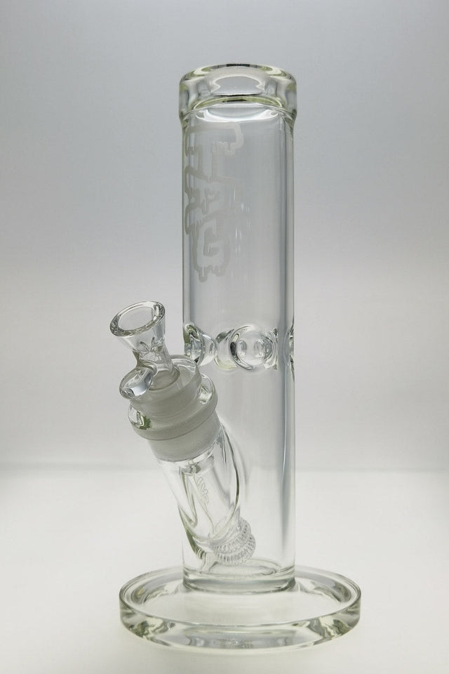 TAG - 12" Straight Tube 65x7MM - 28/18MM Downstem (4.50") - Wavy Sandblasted Logo - Clear .01 is backordered and will ship as soon as it is back in stock.
