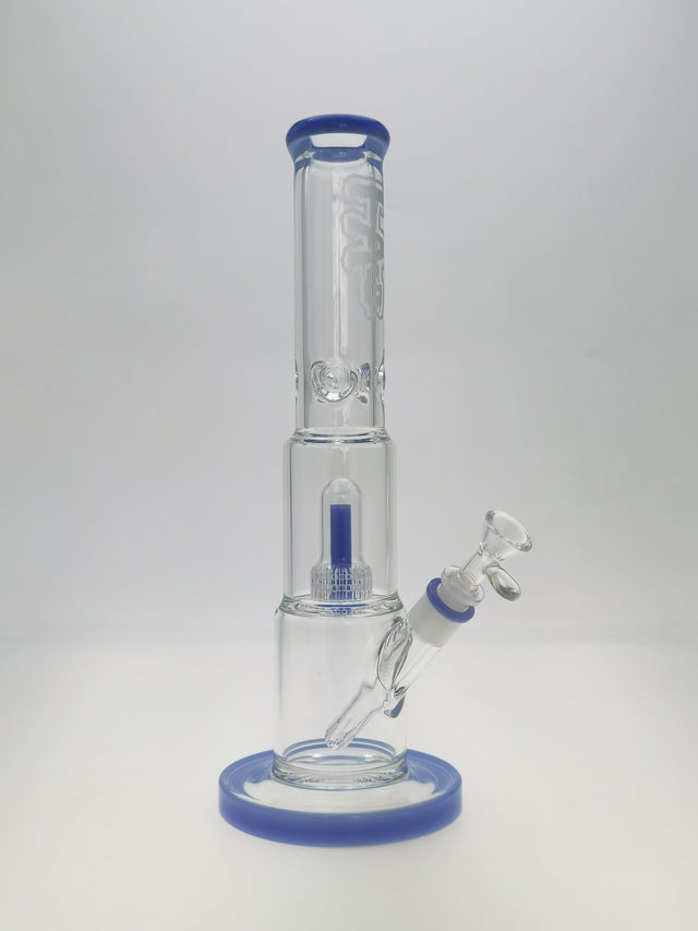 TAG - 15" Matrix Straight Tube w/ 75x5MM Can - 18/14MM Downstem (4.00") - Wavy Sandblasted Logo - Blue Accents .02 is backordered and will ship as soon as it is back in stock.