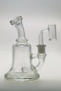 The TAG 6.5" Bent Neck Hammer Head with Bellow Base is a compact rig designed for smooth, flavorful hits. Its hammer head perc cools smoke efficiently, while the bellow base adds stability and extra diffusion. The bent neck enhances comfort, and the 14MM female joint ensures wide compatibility.