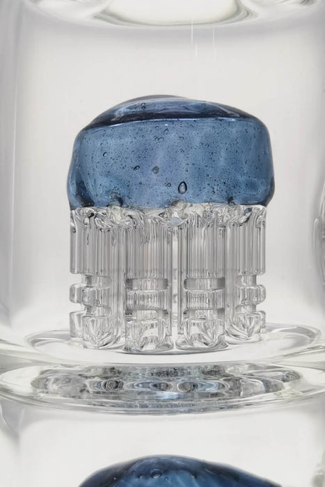 Thick Ass Glass 8.5" Bent Neck Dab Rig w/ Double 6-Arm Tree Perc, 14MM Female - Wavy Laser Engraved Logo - Blue Stardust Accents .03 is backordered and will ship as soon as it is back in stock.