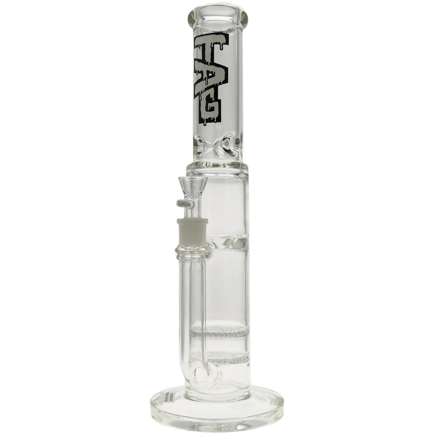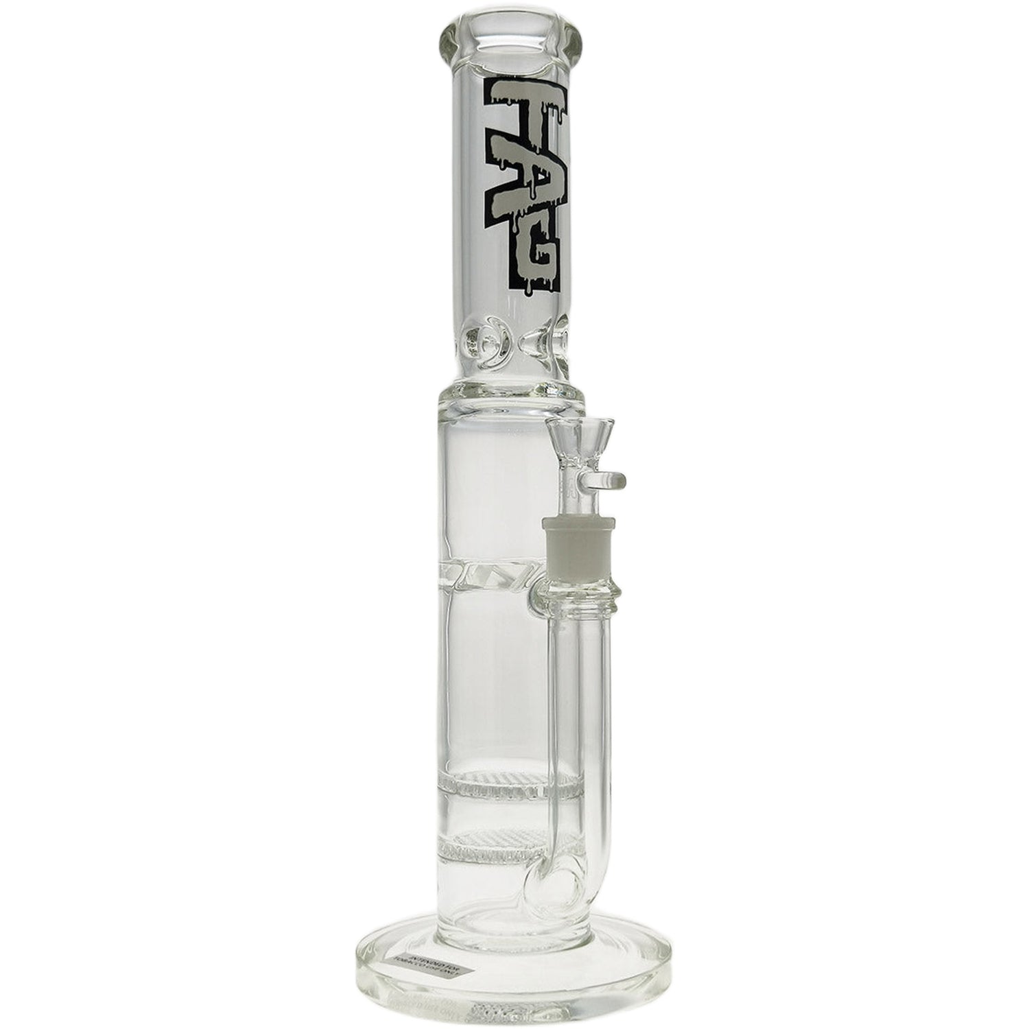 With a thickness of 7mm, this piece is sturdy and robust. Whether you're a seasoned smoker or a beginner, the TAG - 16" Double Honeycomb to Spinning Splash Guard 50x7MM (18MM Female) is perfect for enhancing your bong sessions. π