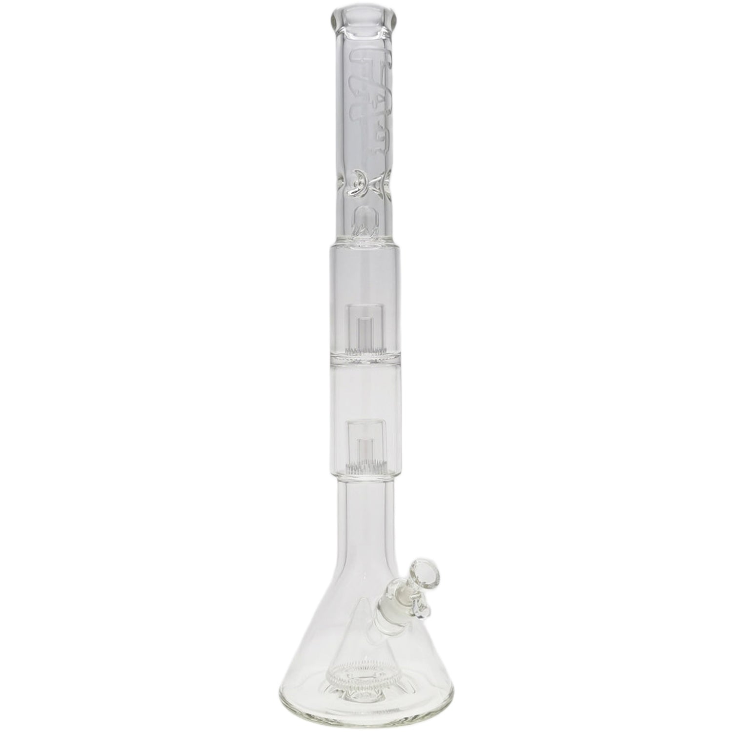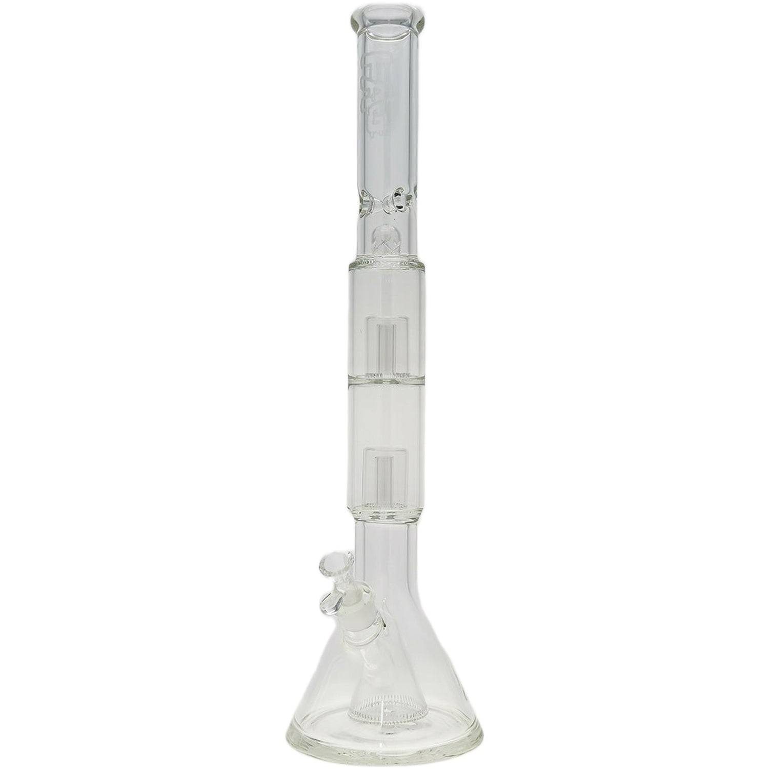 Thick Ass Glass 24" Hybrid Beaker Straight Bong w/ Double Showerhead Percolator 18MM - Wavy Sandblasted Logo - Clear .03 is backordered and will ship as soon as it is back in stock.