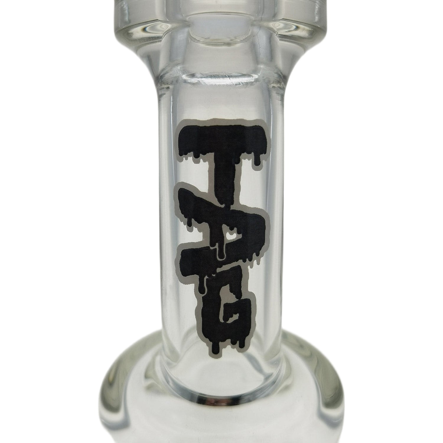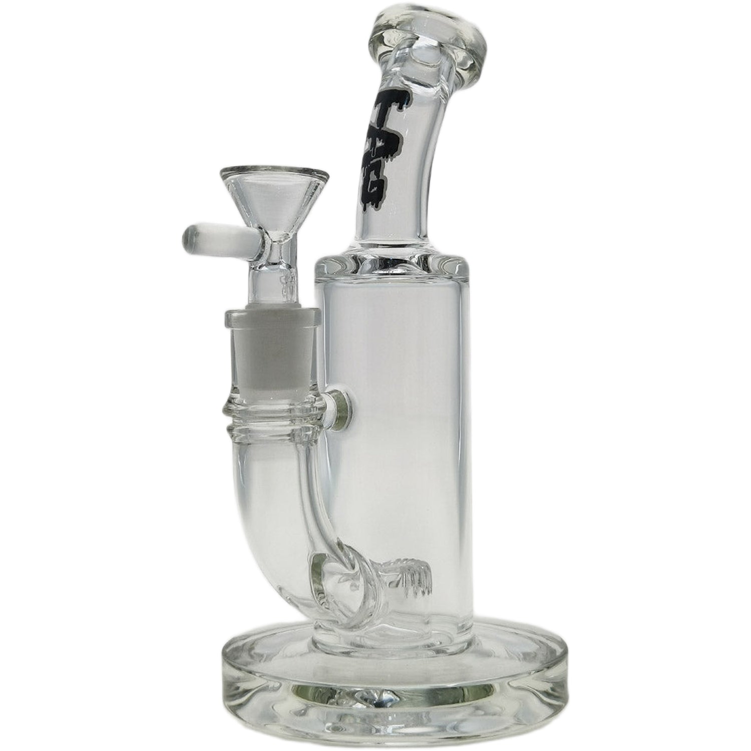 Thick Ass Glass 8" Super Slit Puck Bong with Bent Neck & Showerhead Percolator - Slyme Label - Clear .07 is backordered and will ship as soon as it is back in stock.