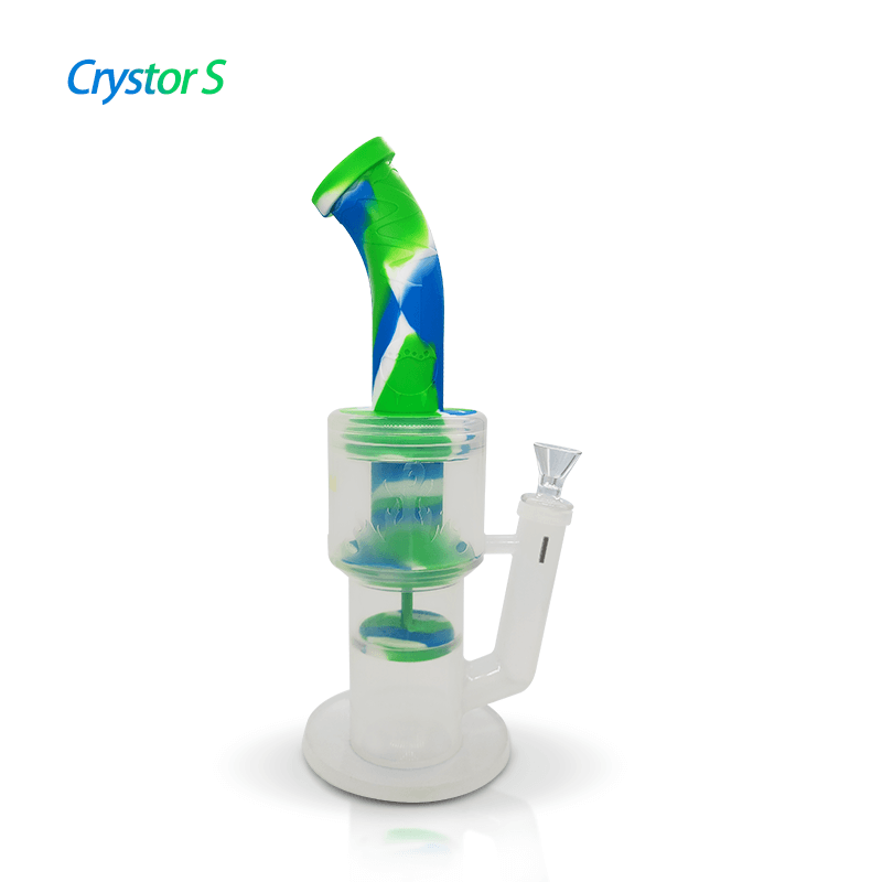 - 1× Crystor S Transparent Silicone Double Percolator Water Pipe with Ice Catcher